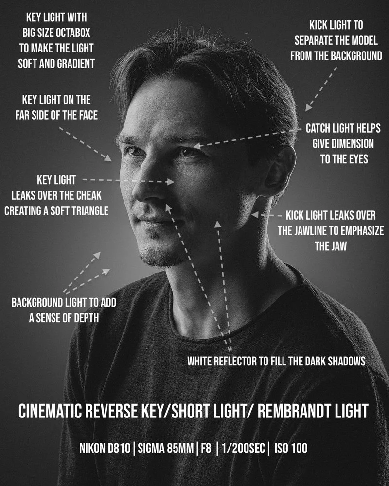 Far side/ reverse key light. More pleasing than nearside key. See sample photos below.